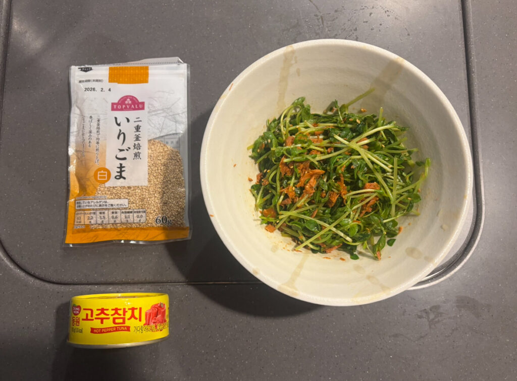 私は今回大好きな唐辛子ツナを使いました。美味しいし豆苗の苦味もより気にならなくなります☺️